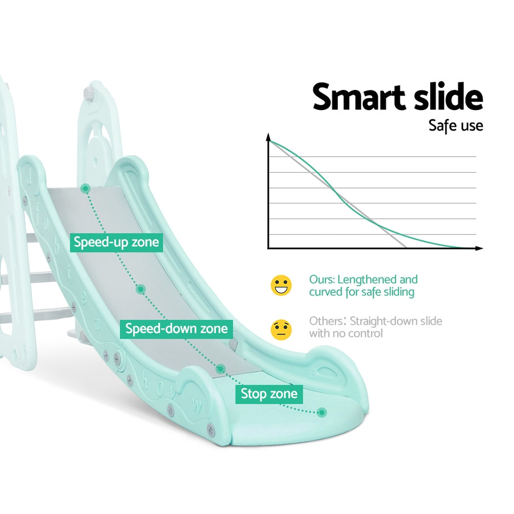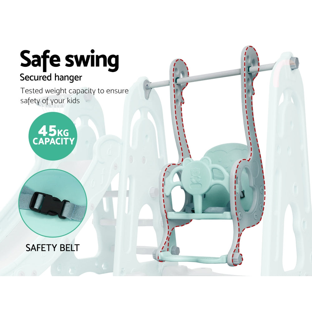 Keezi Kids Slide Swing Outdoor Indoor Playground Basketball Hoop Toddler Play Green