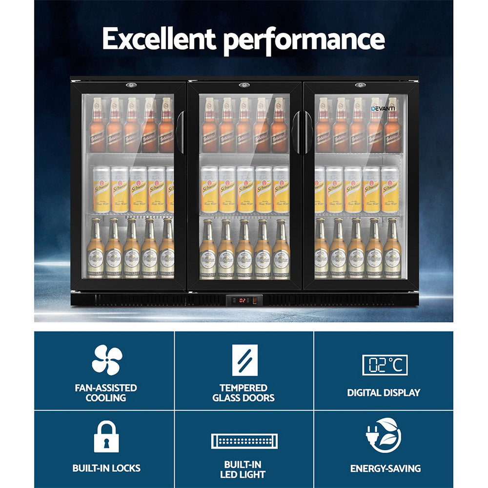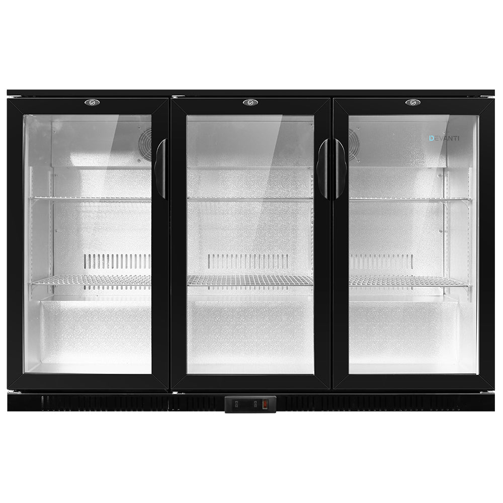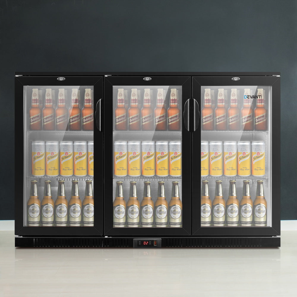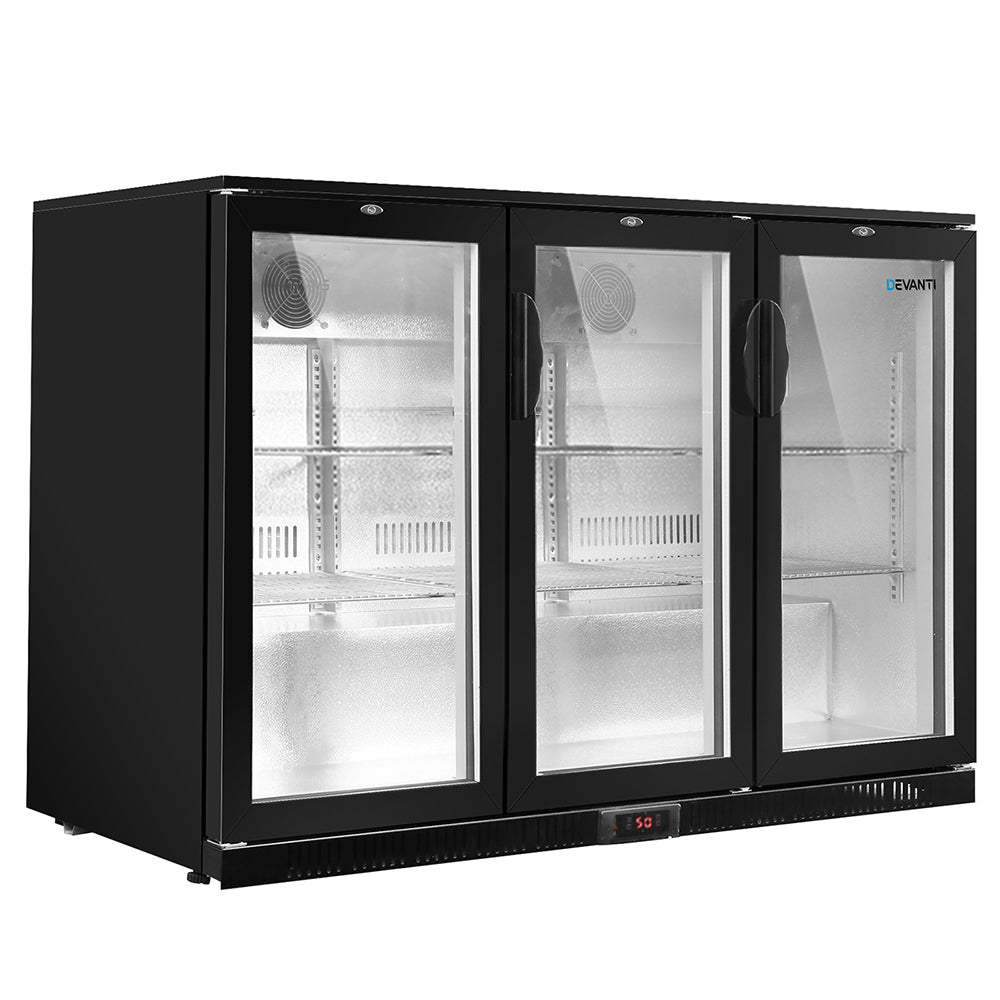 - Devanti Bar Fridge 3 Glass Door Commercial Display Freeer Drink Beverage Cooler Black