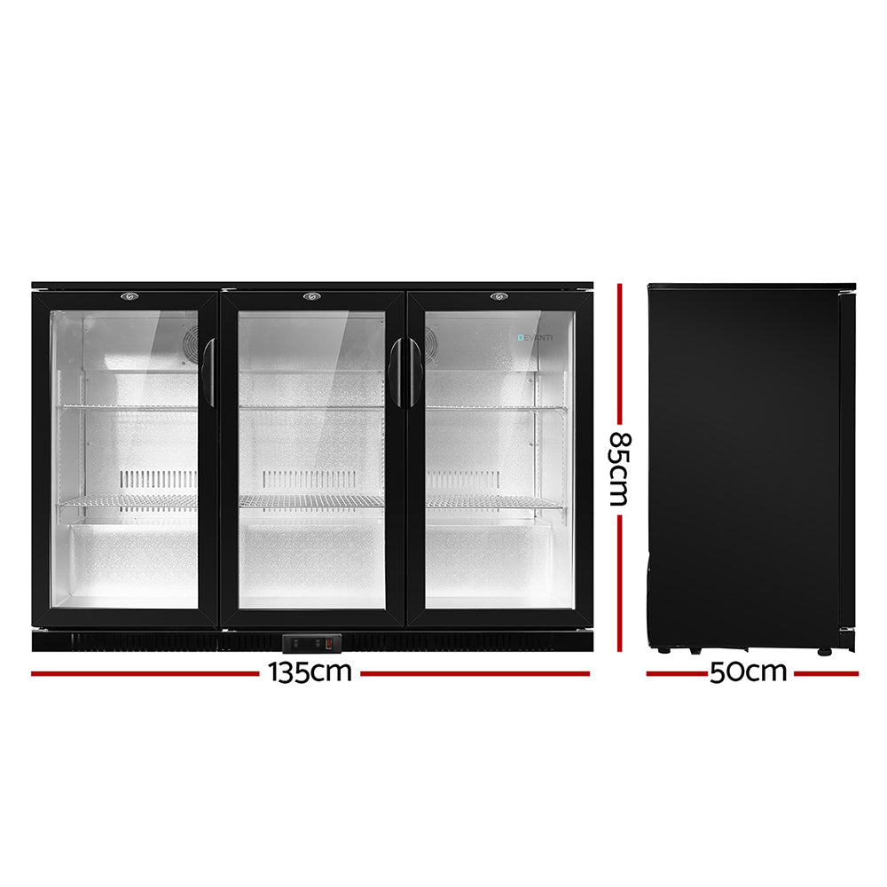 Devanti Bar Fridge 3 Glass Door Commercial Display Freeer Drink Beverage Cooler Black