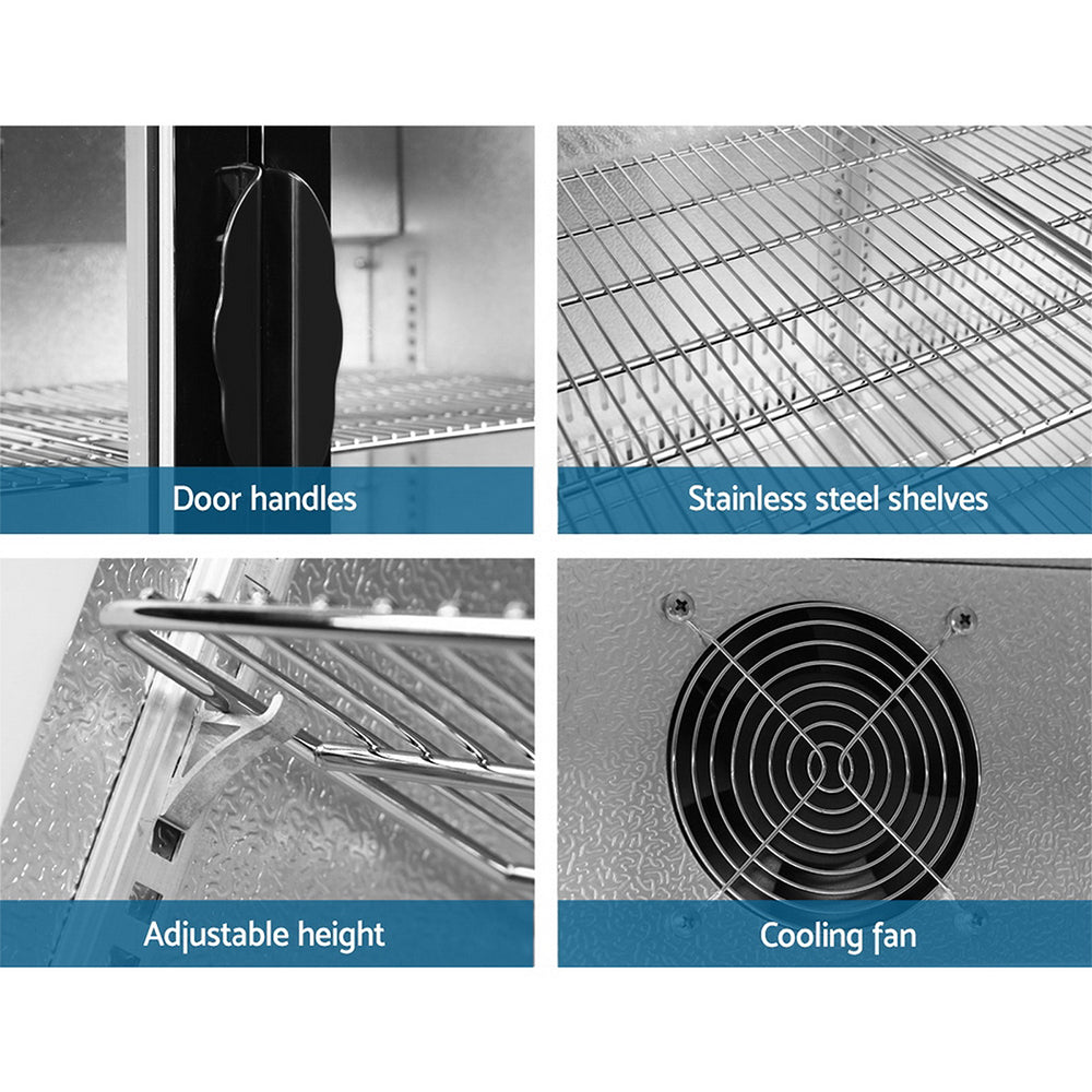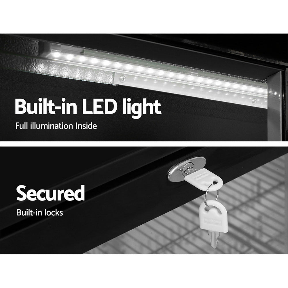 Our spacious Devanti Bar Fridge with triple doors is great for keeping a variety of food and beverages chilled and cooled. Designed with adjustable temperature settings between 2°C and 10°C, the energy-efficient bar fridge lets you set your desired coolness and freshness. Other great features include fan-assisted cooling, LED temperature display, heavy-duty adjustable shelves, double-glazed tempered glass doors, built-in handles and consistent refrigeration to name a few. The bar fridge is also totally eco-friendly with its R600a freon-free refrigerant and well-made for robust use, such as the pressure-injected foam insulation and built-in LED light to ensure operation is smooth, quiet and hassle-free. The fridge also comes with built-in locks to keep the contents safe and secure, especially useful in a retail environment after you close for the night. Perfect for commercial environments such as bars, dessert shops, cafes and restaurants, the Devanti Bar Fridge is a cool investment time and again.